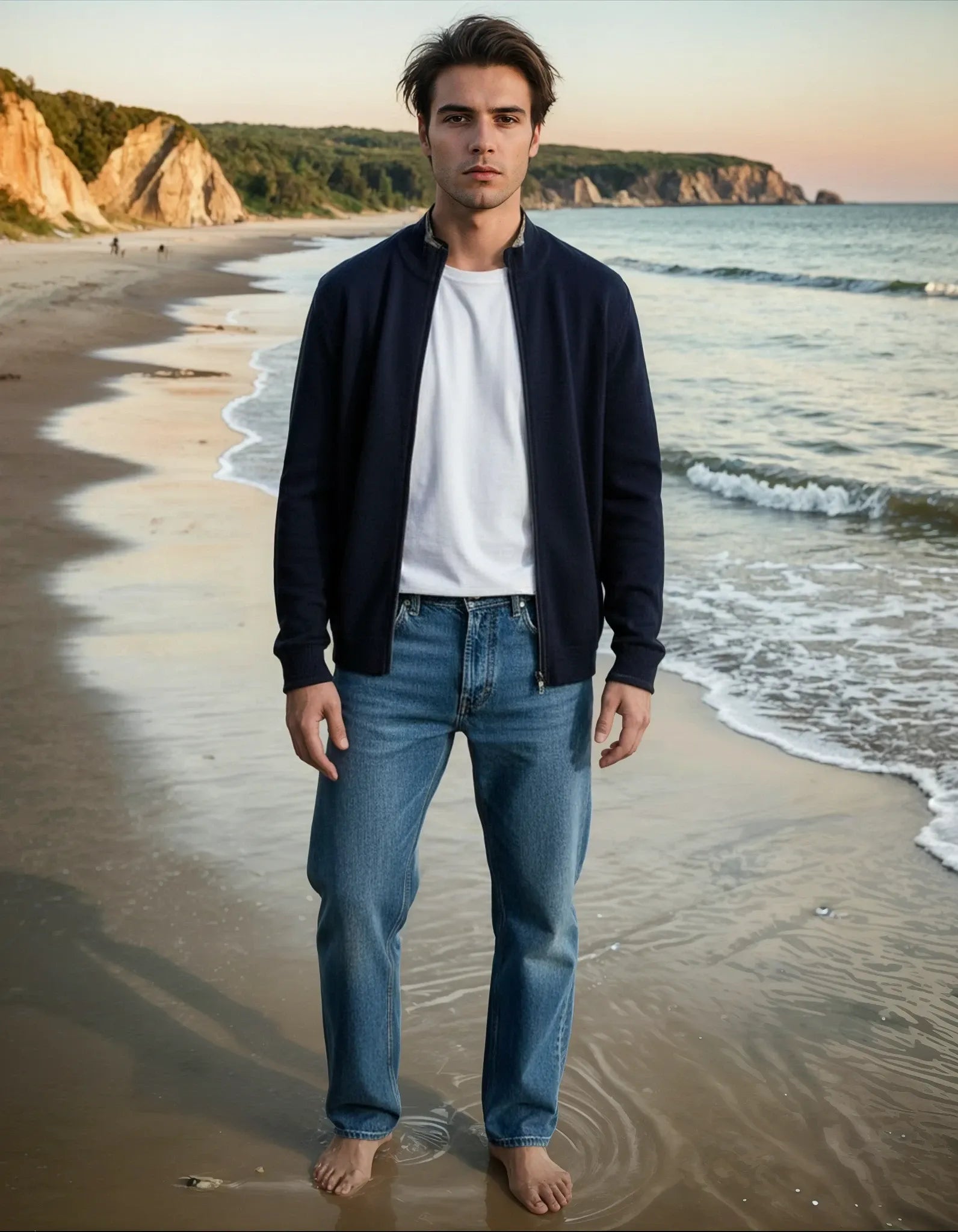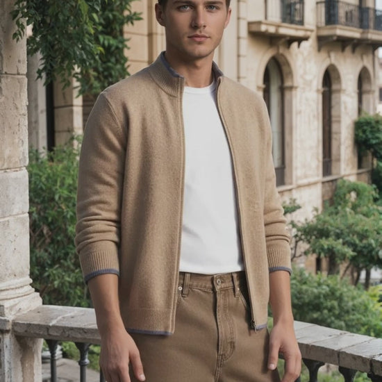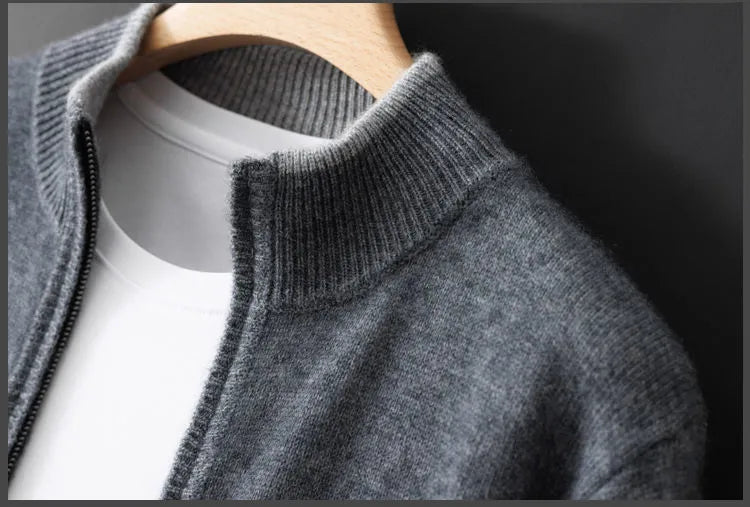The Men’s Stand Collar Zipper Cardigan is crafted from a soft, breathable knit blend that provides warmth and comfort while maintaining a stylish look.